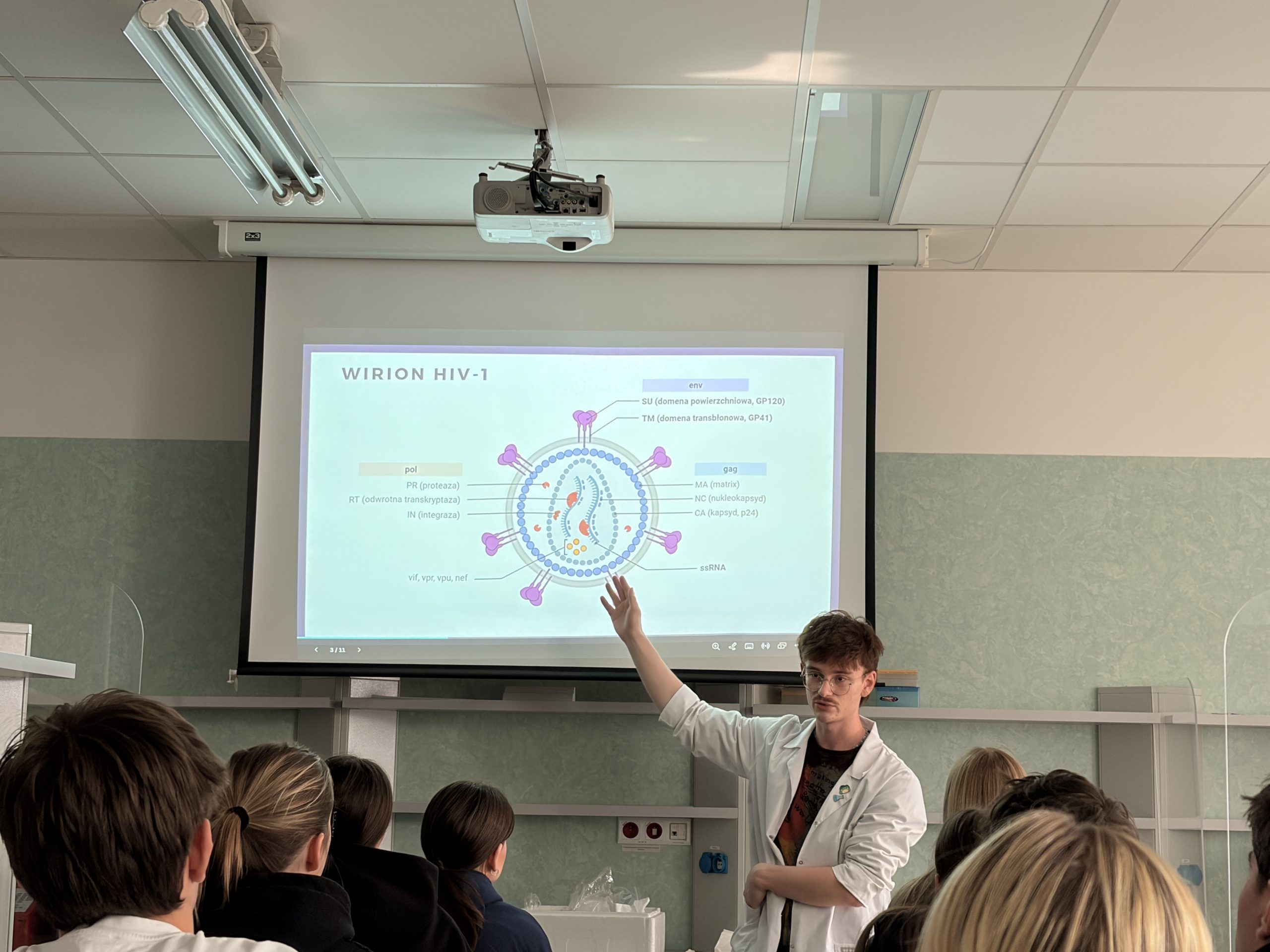Licealiści mogli dowiedzieć się, czy posiadają podwójną delecję w genie CCR5, która może predysponować do zwiększonej odporności na zakażenie wirusem HIV-1. Osoby prowadzące odpowiedziały na zadane przez uczniów pytania i przedstawiły specyfikę kierunku Biotechnologia medyczna na Uniwersytecie Medycznym w Łodzi.